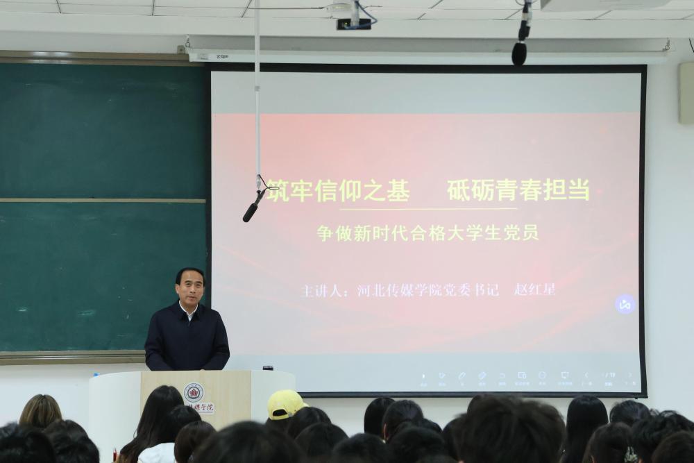 4月9日,河北传媒学院党委书记赵红星以“筑牢信仰之基、砥砺青春担当,争做新时代合格大学生党员”为主题,为学校入党积极分子讲授专题党课,引导青年学子坚定理想信念,明晰党员使命,以实际行动向党组织靠拢。
